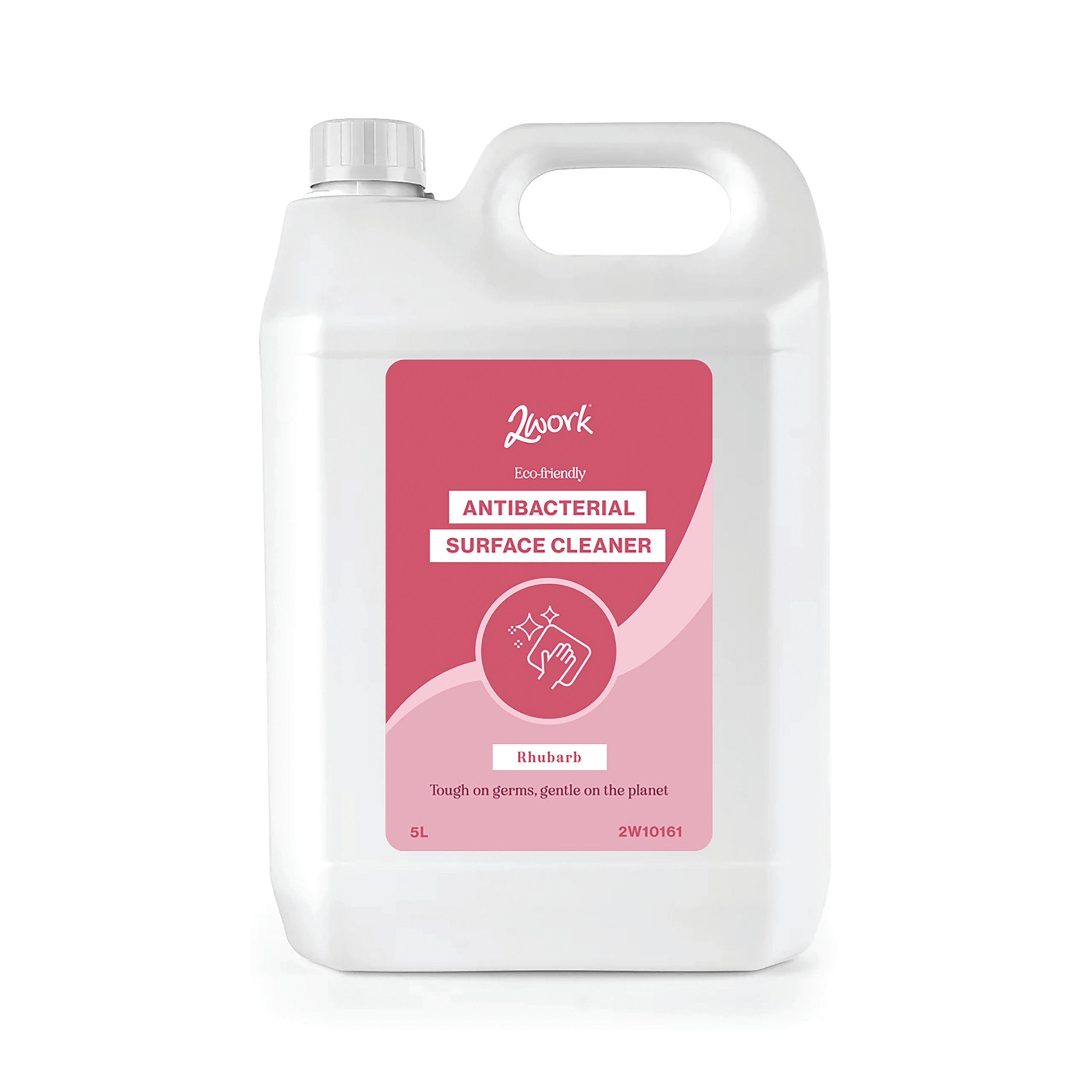 Designed to kill viruses, bacteria and other microorganisms, this 2Work Eco Antibacterial surface cleaner kills 99.9% of all bacteria and is both vegan and cruelty free. The concentrated formula has a pleasant rhubarb fragrance and is ideal for general surface disinfection. Supplied in a 5 litre carton, this pack contains two cartons.