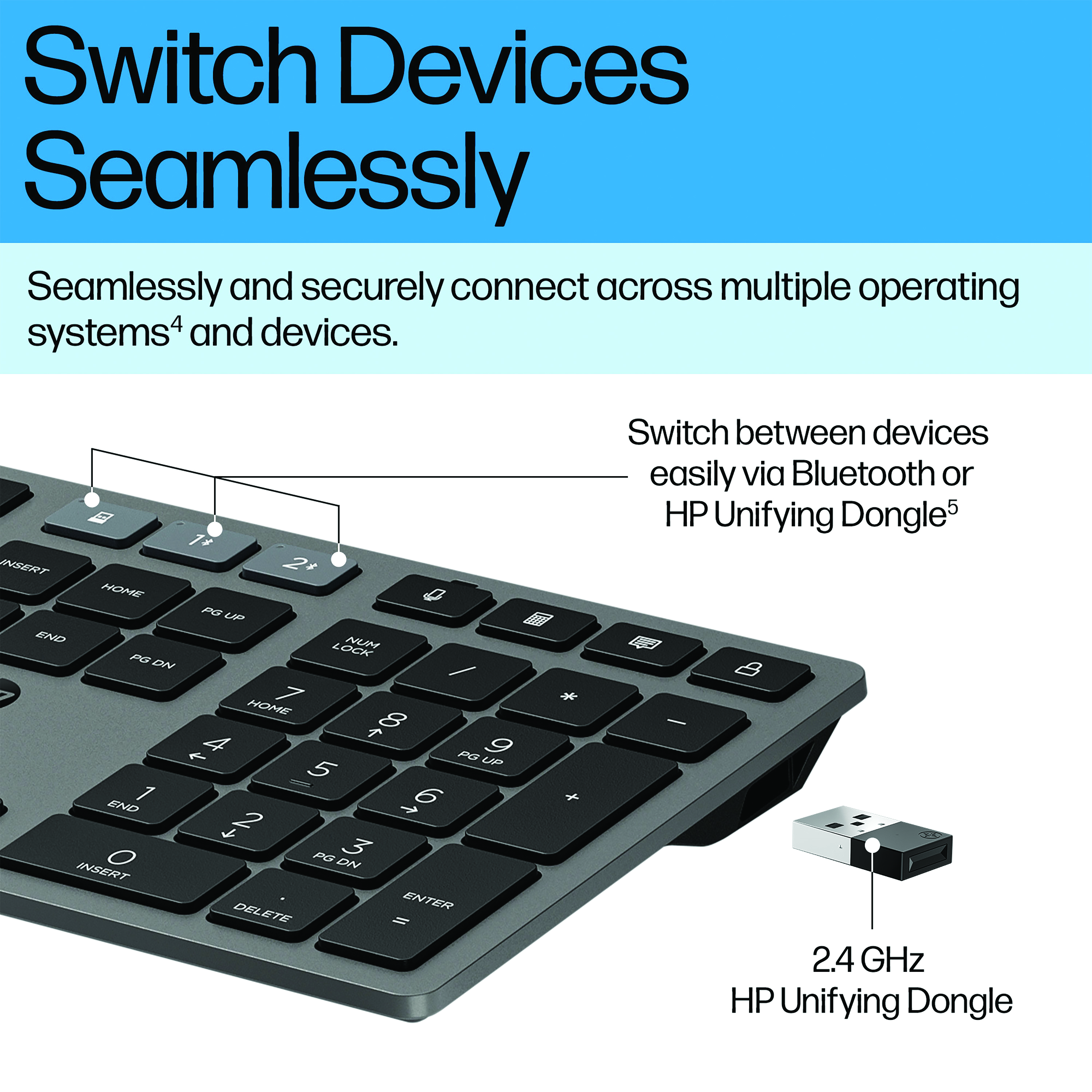 HP 720 Multi-Device Rechargeable Wireless Keyboard 9T5B1AA#ABU