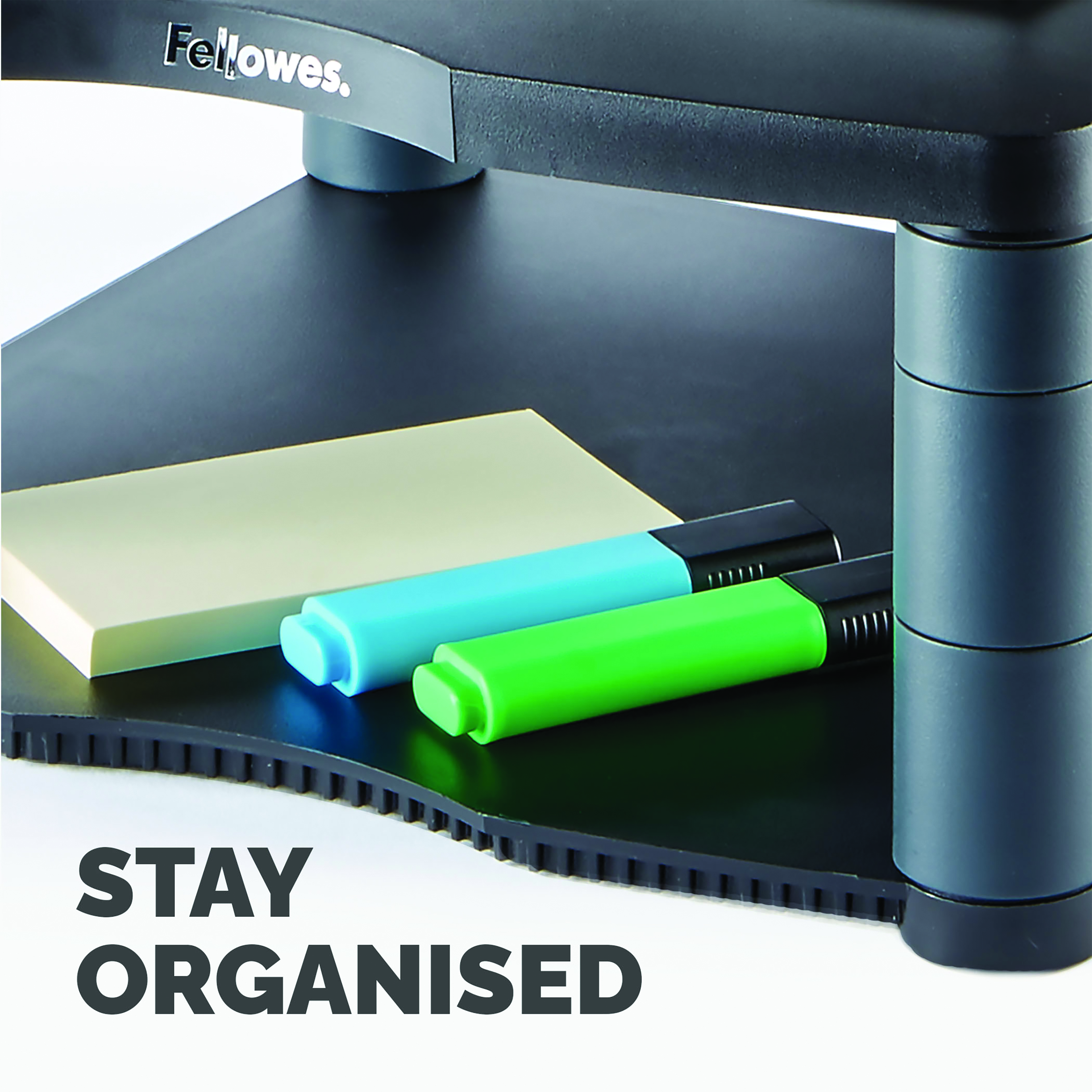 Help minimise discomfort in your workspace by placing your monitor at a more ergonomically correct viewing position to suit you with the Fellowes Premium monitor riser