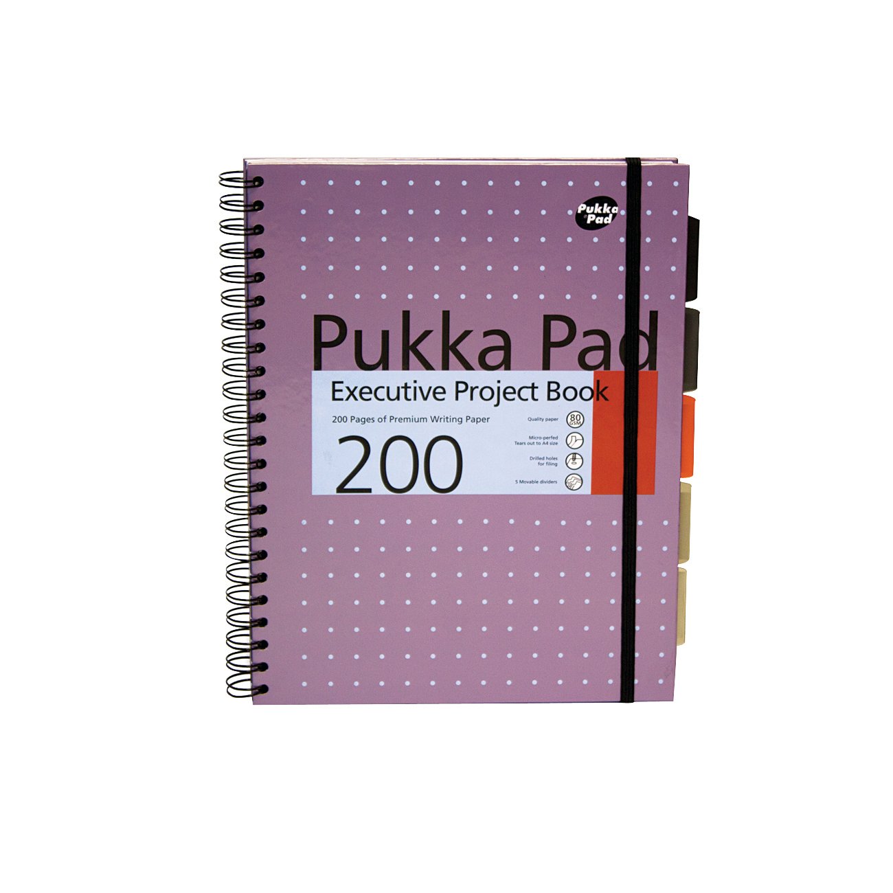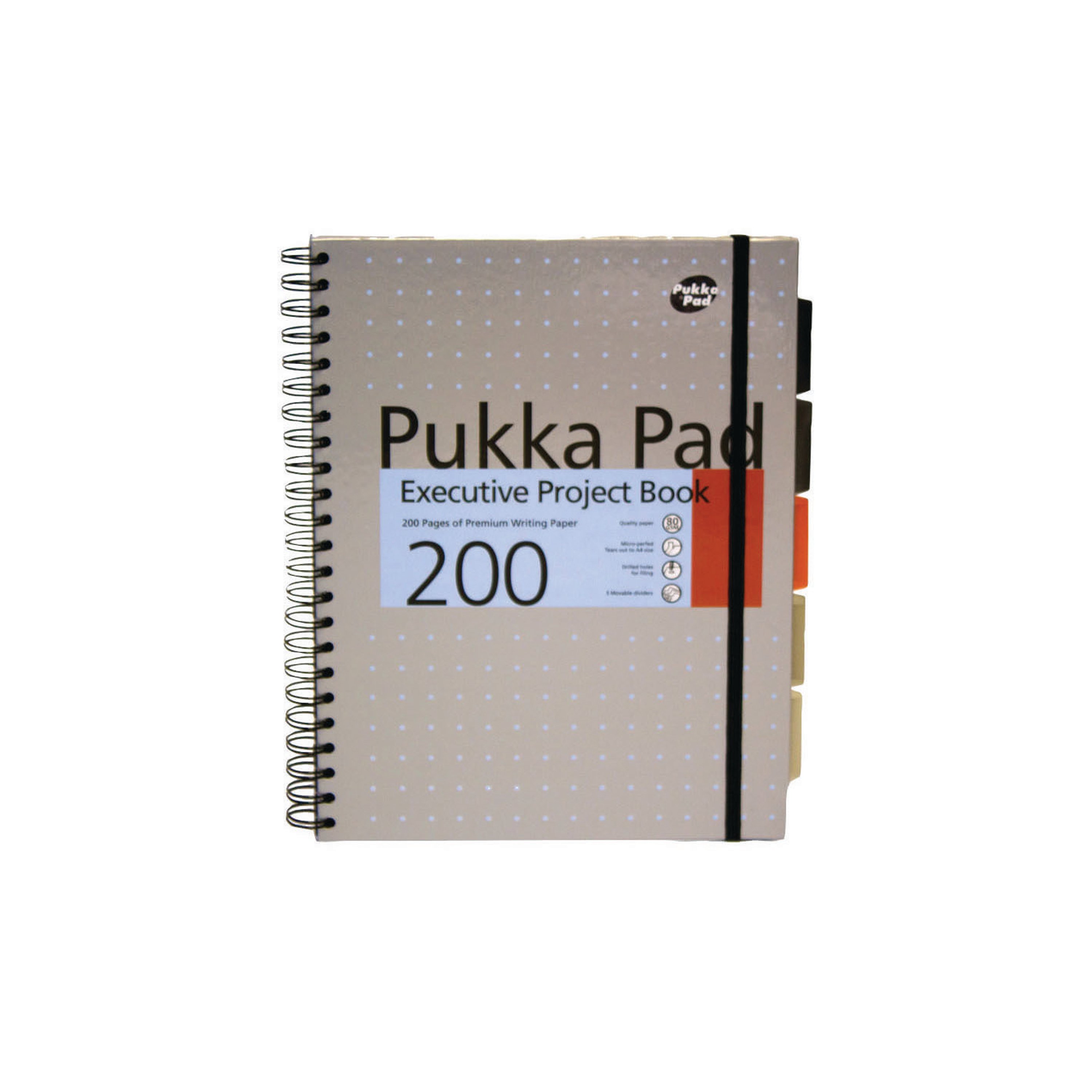 This Pukka Executive Project Book contains 200 pages of quality 80gsm paper and features 5 tinted, removable dividers with storage pockets for organising your notes. The pages are feint ruled for neat note-taking and perforated for easy removal. The notebook is wirebound, allowing it to lie flat for easy note-taking, and features durable hardback covers with a stylish metallic finish. The notebook also features a notes page and a world map page. This pack contains 3 x A4 notebooks.
