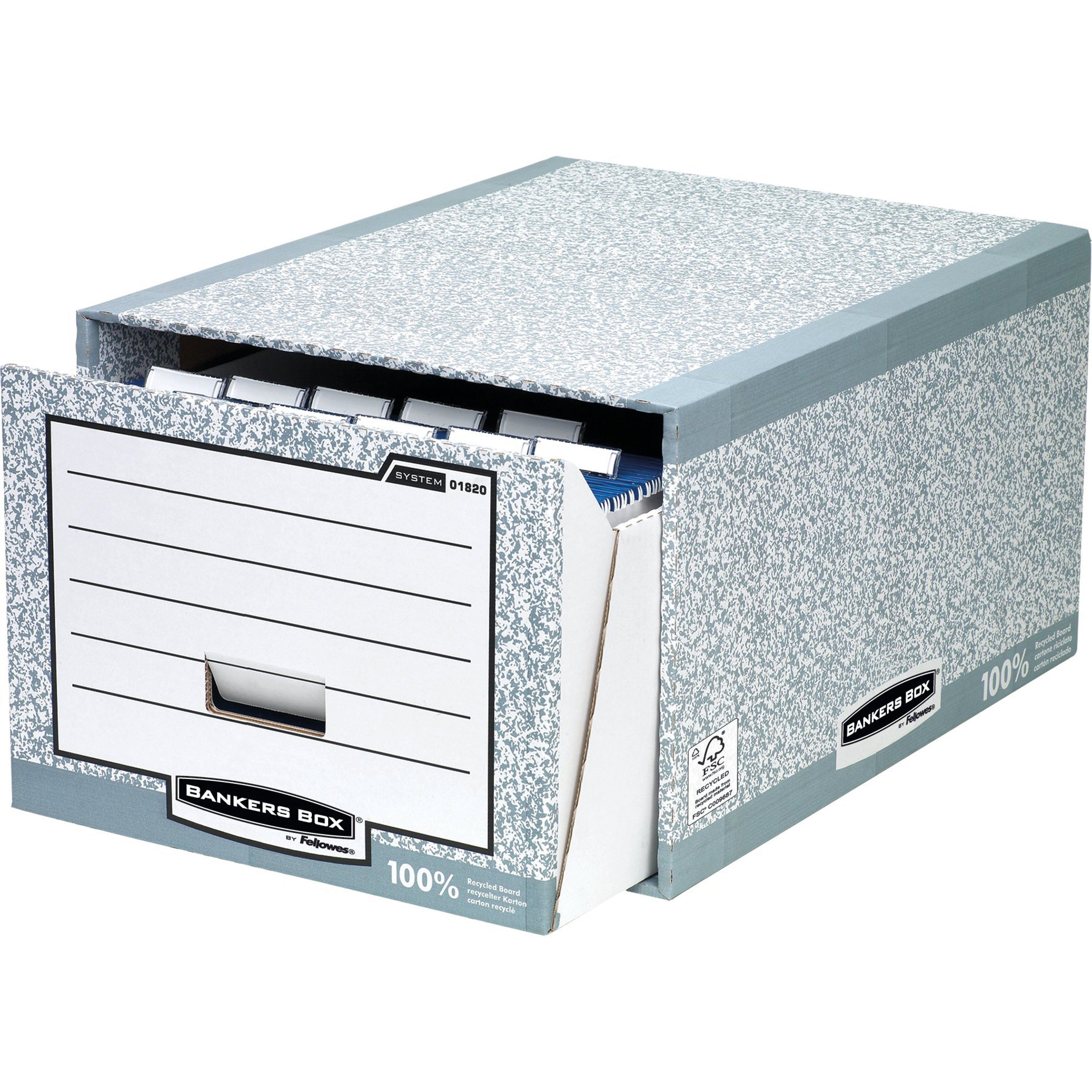 Can hold A4 ring binders and lever arch files, Bankers Box system transfer box files and foolscap suspension files