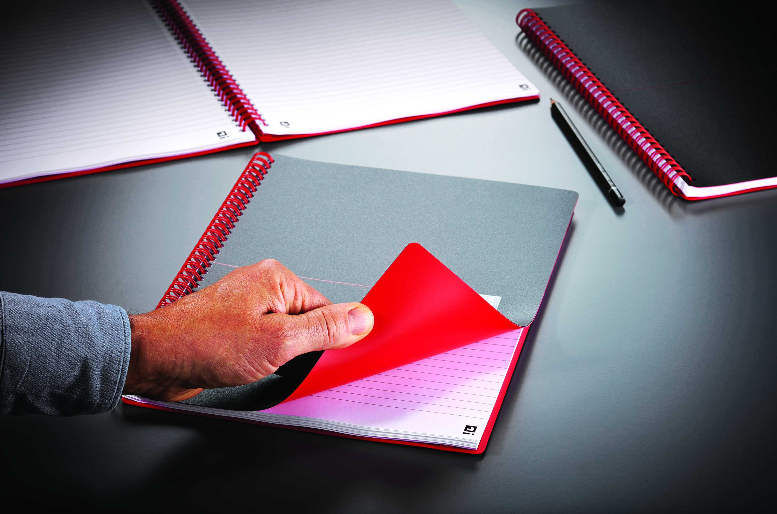 This professional Black n' Red A4 notebook contains 140 pages of quality, recycled 90gsm Optik paper, which is designed for minimum ink bleed through and is ruled for neat notes. The notebook is wirebound, allowing it to lie flat, and features durable polypropylene covers and an elasticated closure to help keep contents secure. This pack contains 5 A4 notebooks.