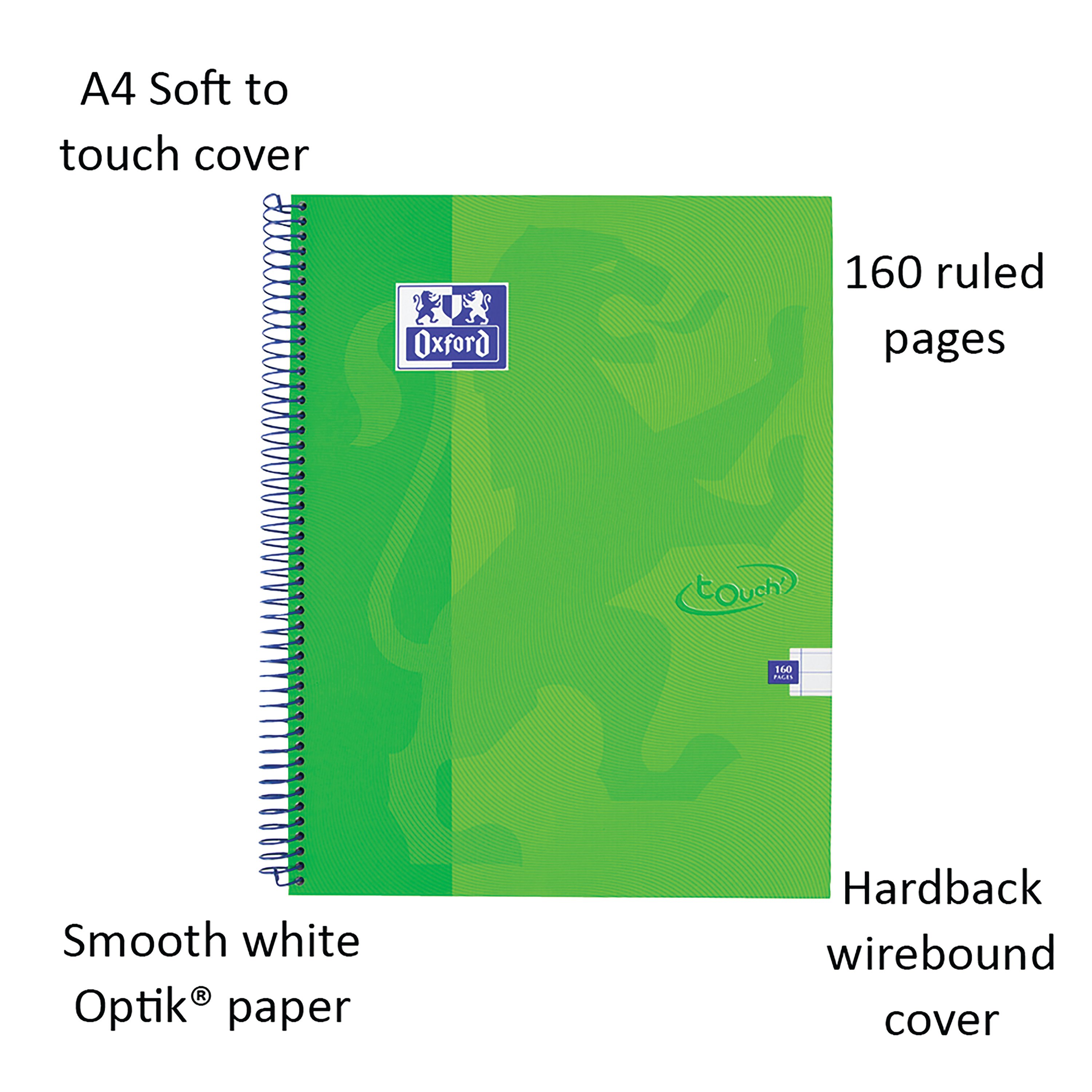 Oxford Touch Wirebound Hard Notebook A4 Assorted Pack of 5 400109986