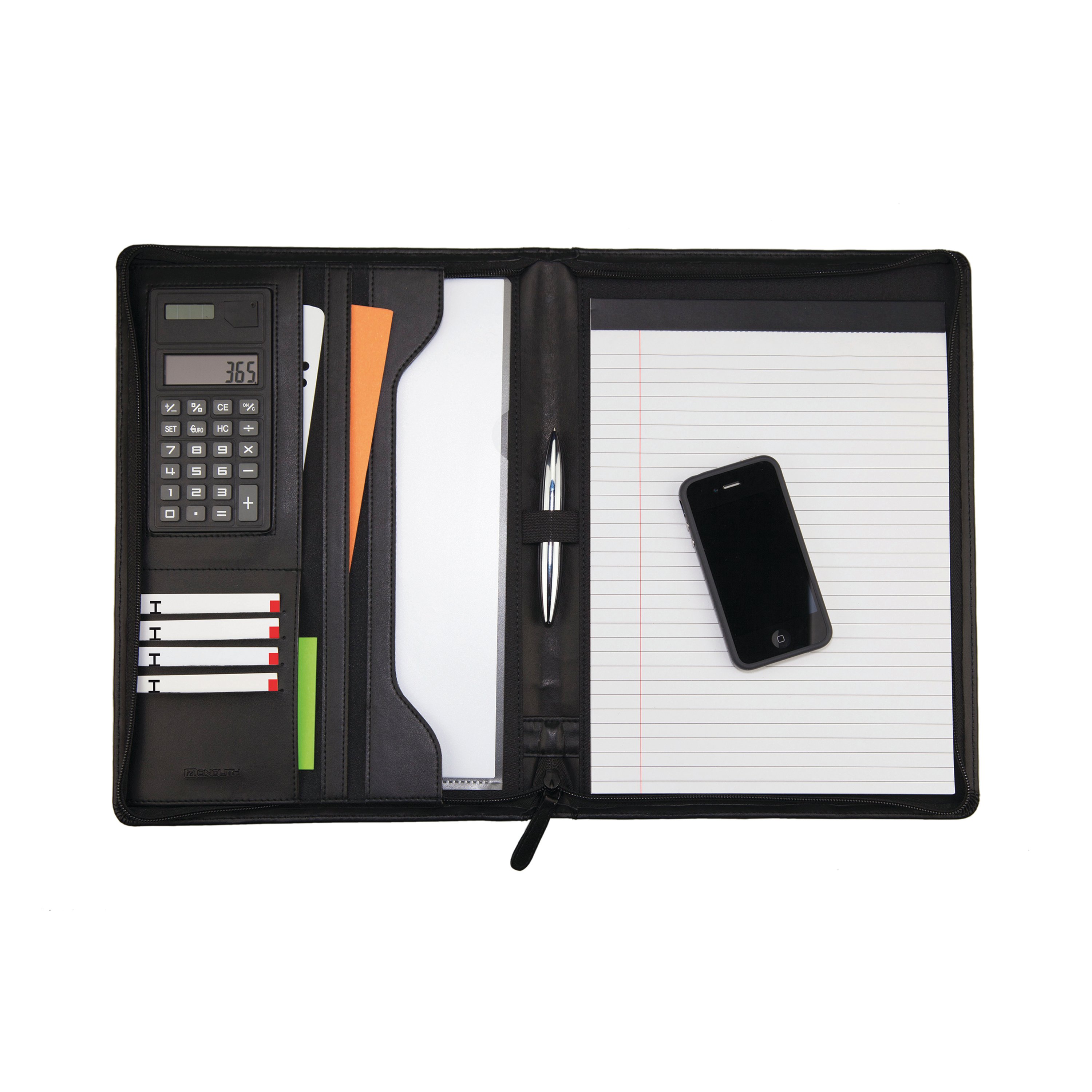 Monolith Leather Look Conference Folder w/A4 Pad and Calc Black 2914