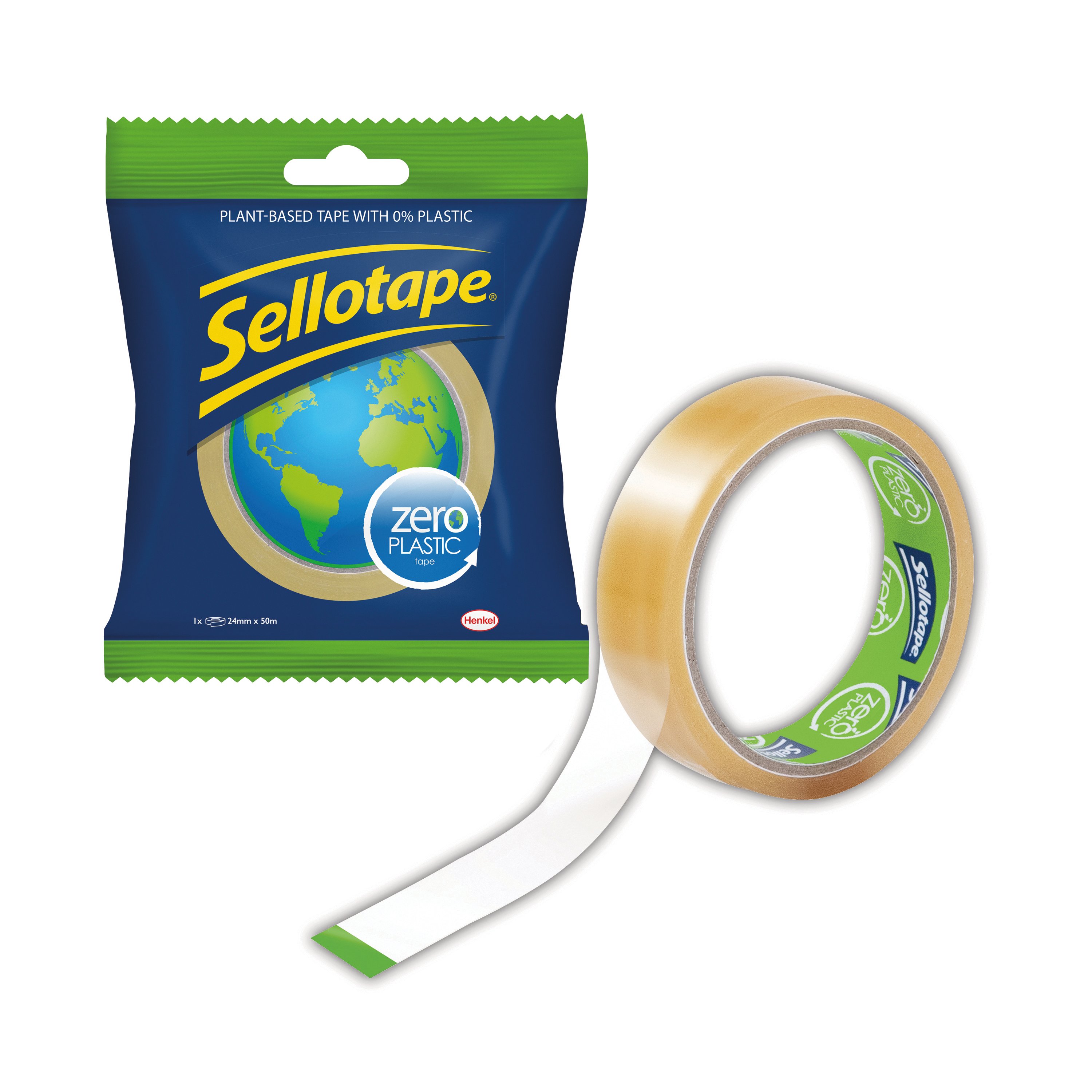 Sellotape Zero Plastic performs just as well as Original Golden Sellotape but is 100% plant based and plastic free! Supplied on a compostable and biodegradable roll, this sustainable sticky tape is made from cellulose film and naturally based glue and contains 0% plastic. The tape is anti-tangle and easy to tear so there is no need to use scissors, or your teeth. The box and core can be put into the recycling bin and the tape itself can be disposed of in industrial composting bins. The packaging, tape and inner core then disintegrate into natural elements. Ideal for improving your office sustainability, these rolls fit all large core tape dispensers.