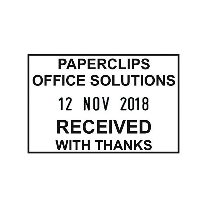 Create your own, customised self-inking stamp with this Q-Connect stamp voucher. The stamp combines a 4mm date with up to 4 lines of text with an impression size of W43 x H28mm. Design your own stamp online with a choice of text and graphics. This self-inking stamp provides thousands of impressions before re-inking is required.