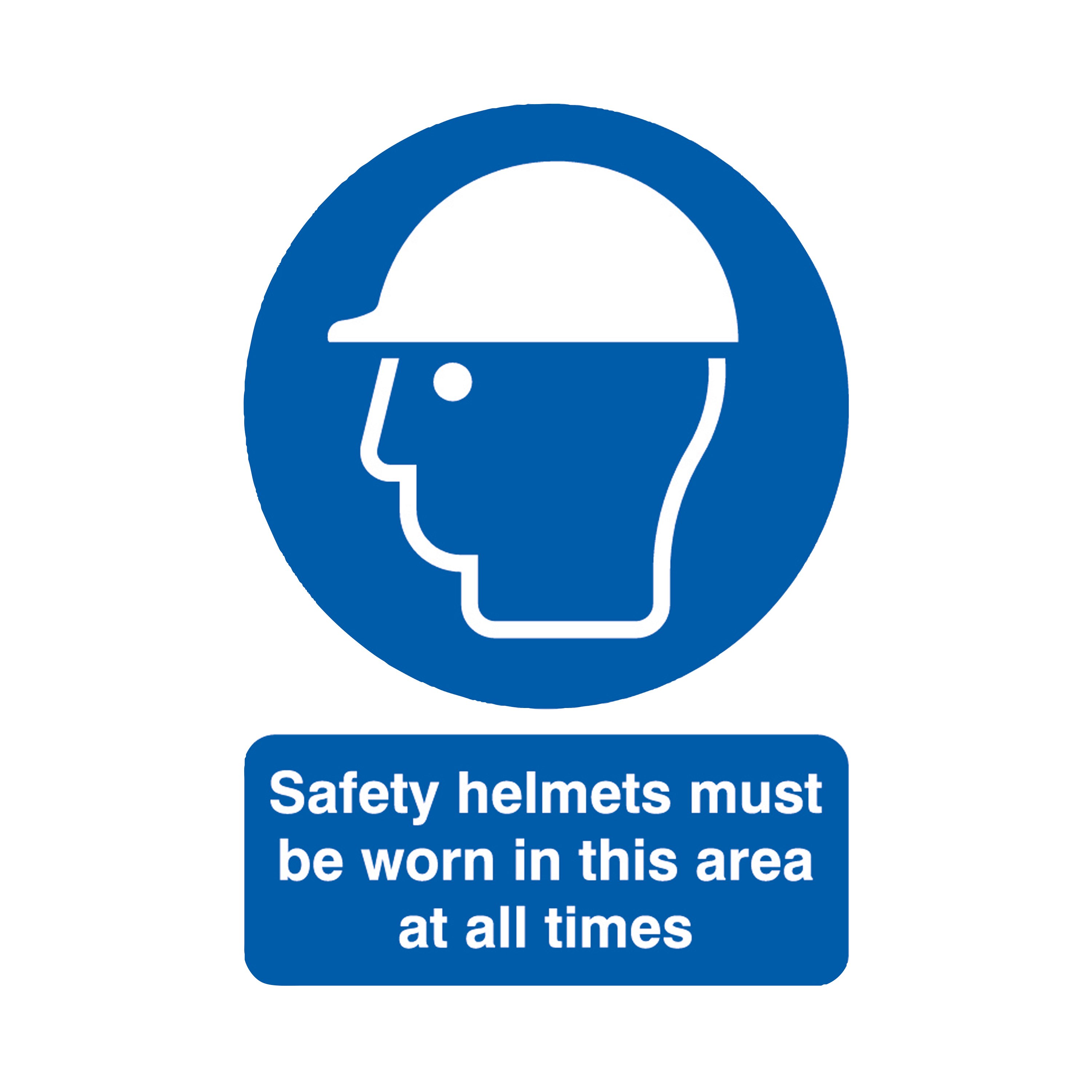 This sign is designed to inform and instruct all visitors, employees and anyone esle arriving on your site that they need to wear safety helmets for their own protection. The universal symbol and recognisable blue and white colour scheme instantly categorises this as a mandatory sign on sight, keeping employees, customers and visitors informed and safe. The durable PVC sign is easily fixed to a variety of surfaces and is suitable for both indoor and outdoor use. This sign is A4 in size.