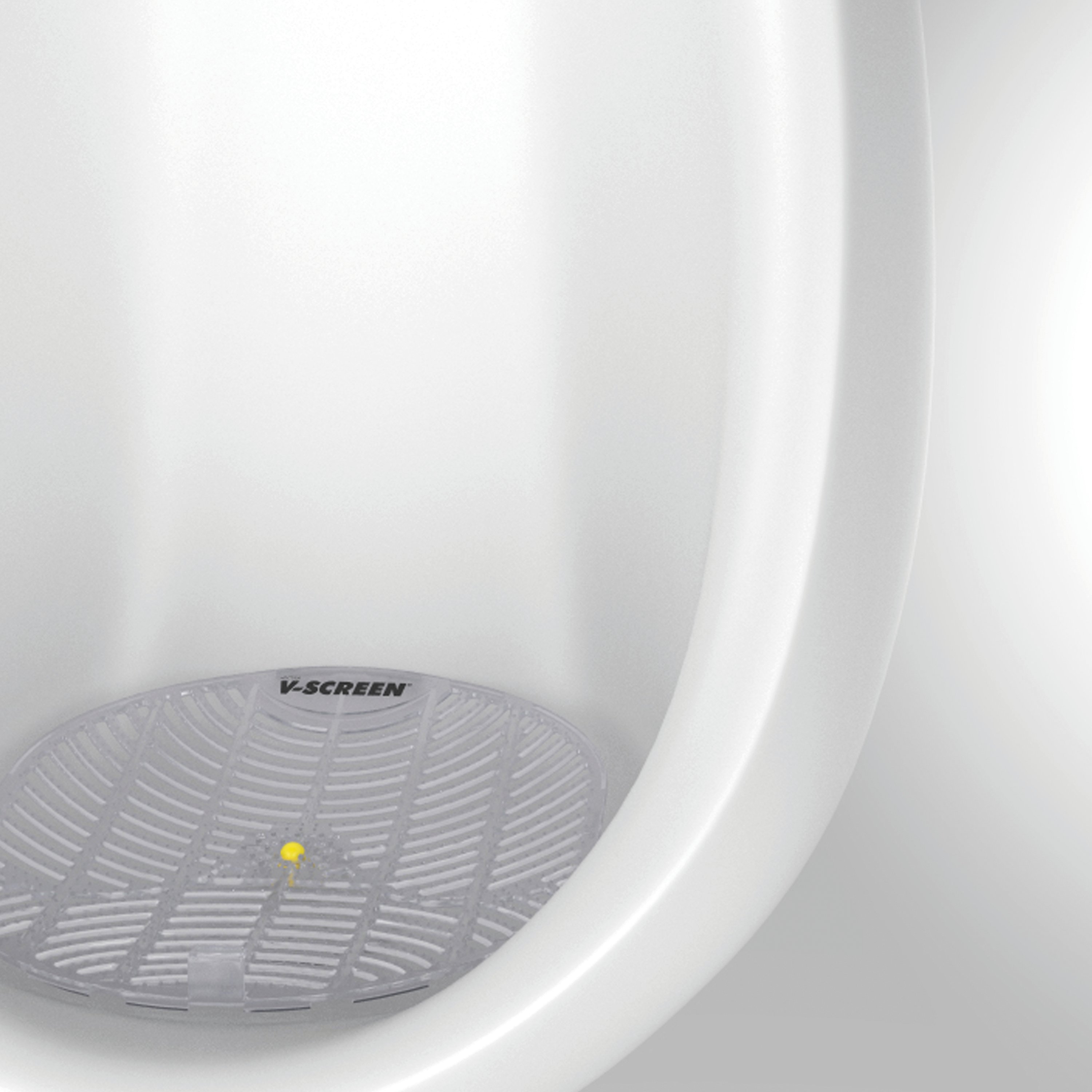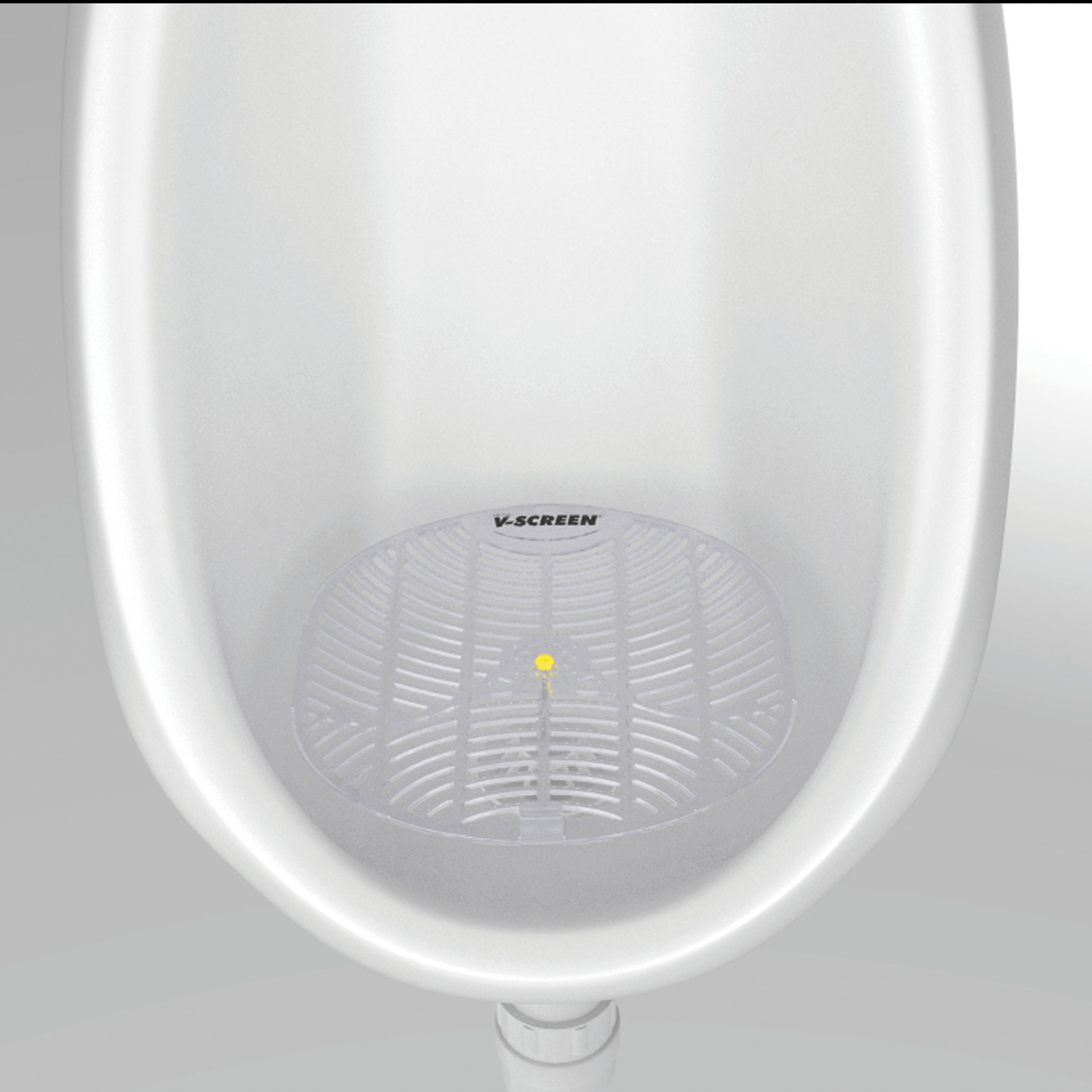 The V-Screen fits over the drain or urinal, the net design catches debris such as paper, gum and other waste, keeping drains and urinals free flowing. The V-Screen is fragranced Citrus Mango which helps to keep bathrooms smelling fresh for up to 30 days. The web design prevents splash-back and the angled anti-splash texture keeps urinal areas clean. The anti-slip feature keeping the V-Screen in the correct position.